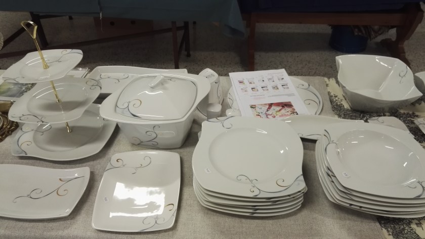 Käytännössä yläkerran tiloista löytyi kaikkea vanhaa astioista huonekaluihin ja valaisimiin. Hinnat ovat toki korkeahkoja, mutta keräilijän kannattaa käydä vilkaisemassa. Itse kun en kaikkea osaa hinnoitella niin, että tietäisin onko esimerkiksi jokin astiasto ylihinnoiteltu vai ei.