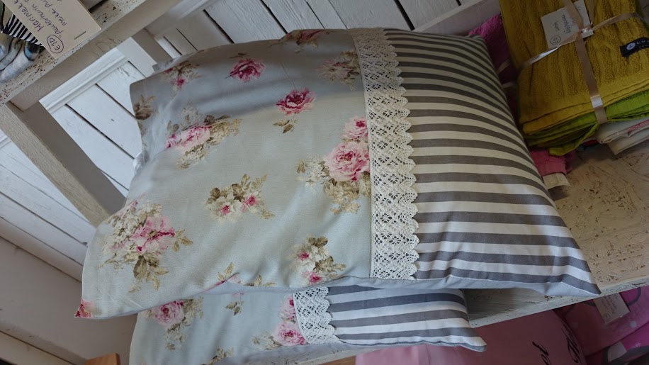Sivuhuoneessa oli paljon käsityönä tehtyjä uniikki tai lähes uniikkikappaleina erilaisia tyynyjä, verhoja, vuodevaatteita, koruja jne. Käsityöt ja muut esineet noudattivat mielestäni talonpoikais- ja maalaisromanttista tyylisuuntaa. Ehdottomasti kannattaa tutustua, jos on mieltynyt tällaiseen tyyliin.
