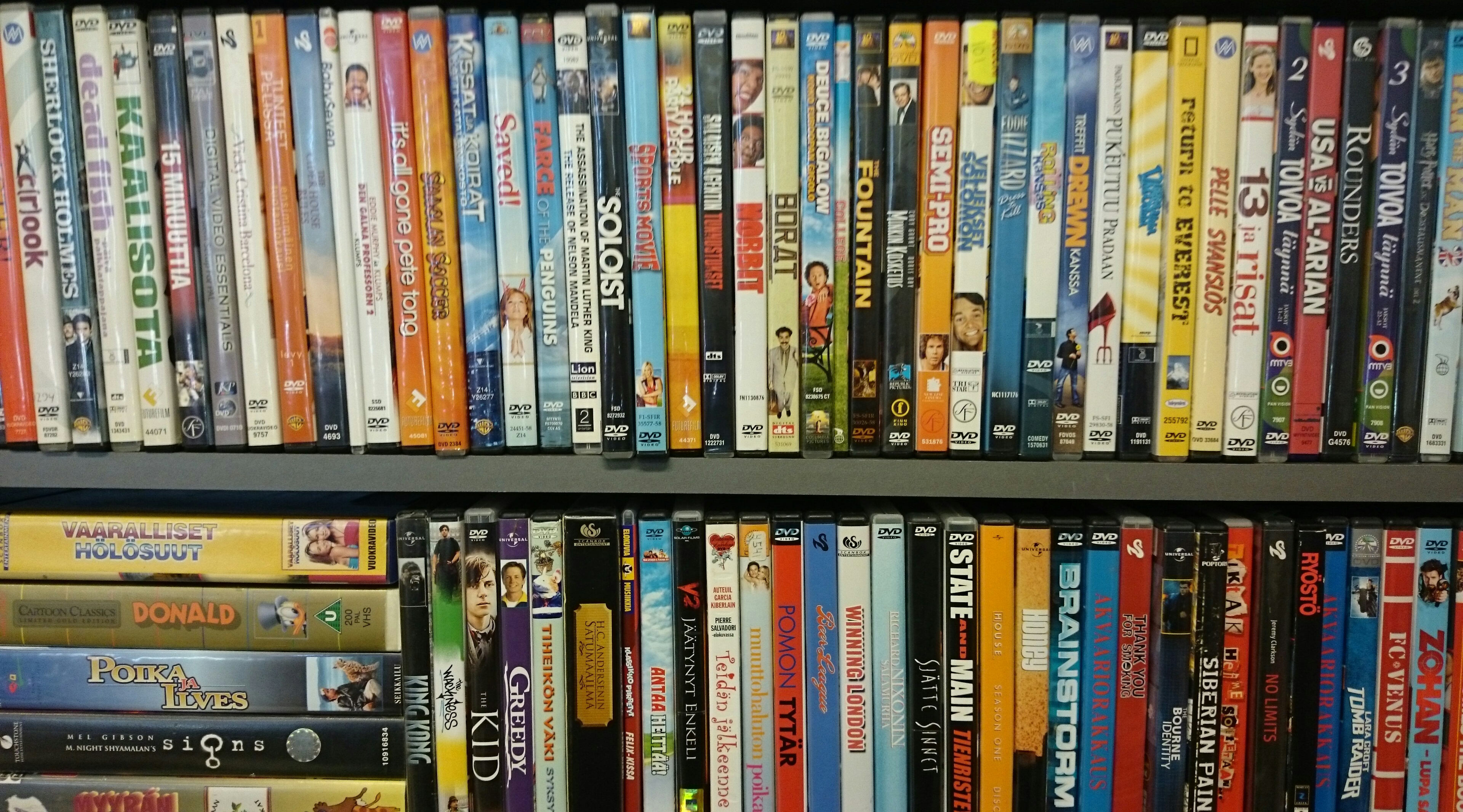 Yksi hyllykkö oli täynnä dvd-elokuvia. Sen verran paljon niitä oli, että olisi saanut aikansa käyttää elokuvien selaamiseen. Kun elokuvat olivat vielä teemoittain sekaisin, niin hankala hyllystä oli mitään tiettyä löytää. Pieni vinkki kirpparille: järjestäkää elokuvat ainakin niin, että lasten elokuvat ovat erillään muista elokuvista.